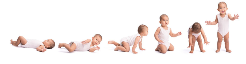Als een baby ter wereld komt, ontwikkelt het zich in een aantal fases die logisch op elkaar volgen. De ultieme krachttraining: van niets naar een staand en lopend mensje, in pakweg zo’n anderhalf jaar.